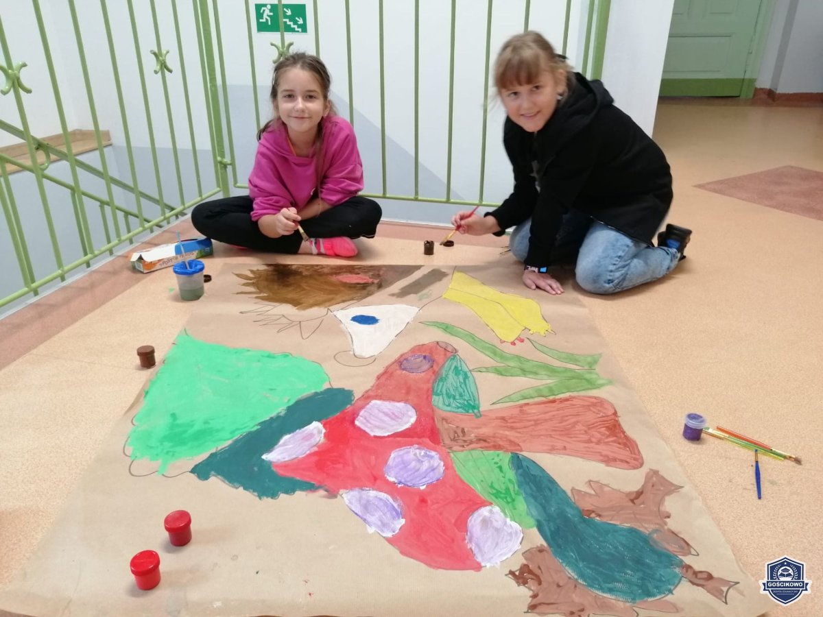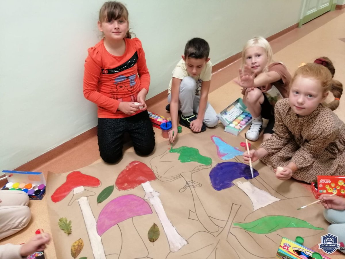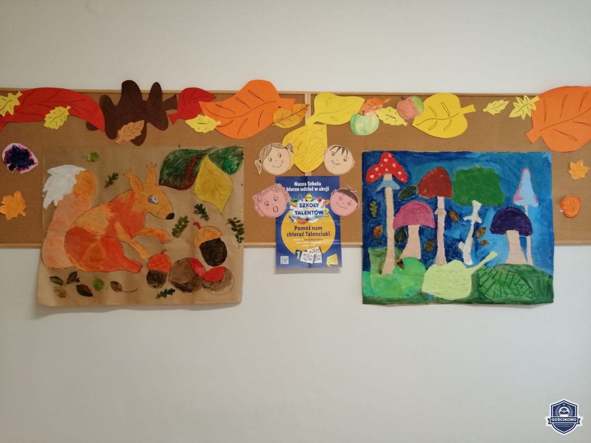 22 września nasi najmłodsi uczniowie z klas I-III uczestniczyli w jesiennych aktywnościach: były zabawy, tańce i działalność twórcza: malowanie farbą jesiennych obrazów. W efekcie powstała piękna, zgodna z nadchodząca porą roku, dekoracja holu.