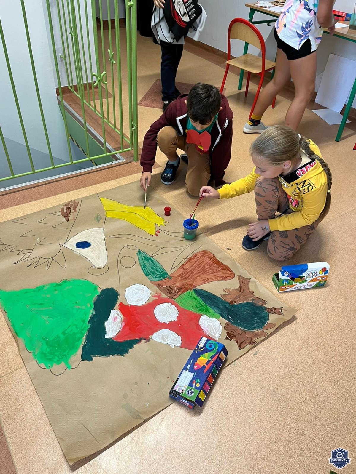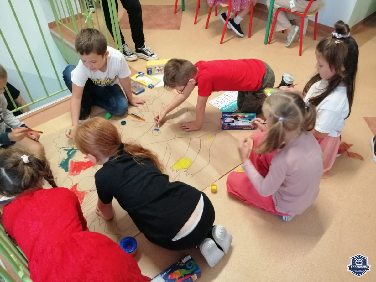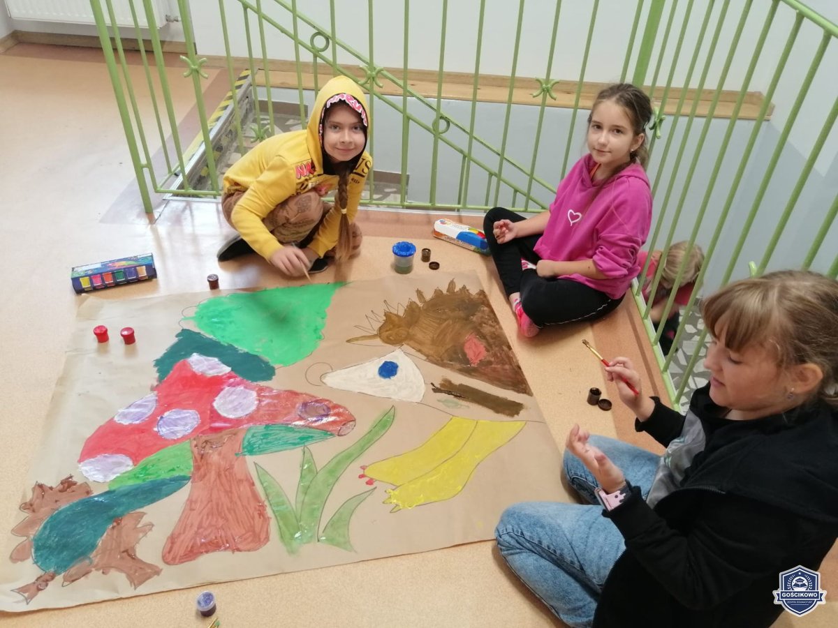 22 września nasi najmłodsi uczniowie z klas I-III uczestniczyli w jesiennych aktywnościach: były zabawy, tańce i działalność twórcza: malowanie farbą jesiennych obrazów. W efekcie powstała piękna, zgodna z nadchodząca porą roku, dekoracja holu.